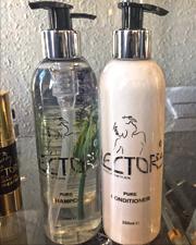 'PURE', Hector's new and improved SODIUM CHLORIDE- free SHAMPOO. 250ml